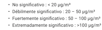 Les plages de valeurs utilisées dans le dispositif MICA comme indicateurs sont basées sur les valeurs SBM pour les zones de repos, ainsi que sur les valeurs au-dessus desquelles des réactions allergiques et sensibilisantes se produisent :