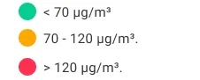 La conversion entre µg/m³ et ppm/ppb, comme pour les autres unités de concentration courantes, dépend du type de composé et des conditions de l'environnement intérieur. Pour une pièce habitée typique, dont la température avoisine les 20 °C :